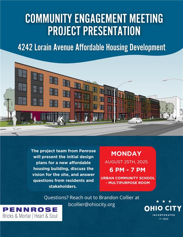 Ohio City Incorporated invites you to join us for a community engagement meeting to learn more about the proposed affordable housing development at the site of the former McCafferty Health Clinic, located at 4242 Lorain Avenue.
